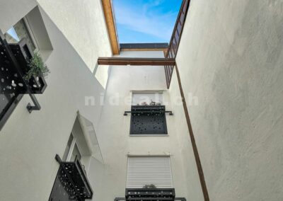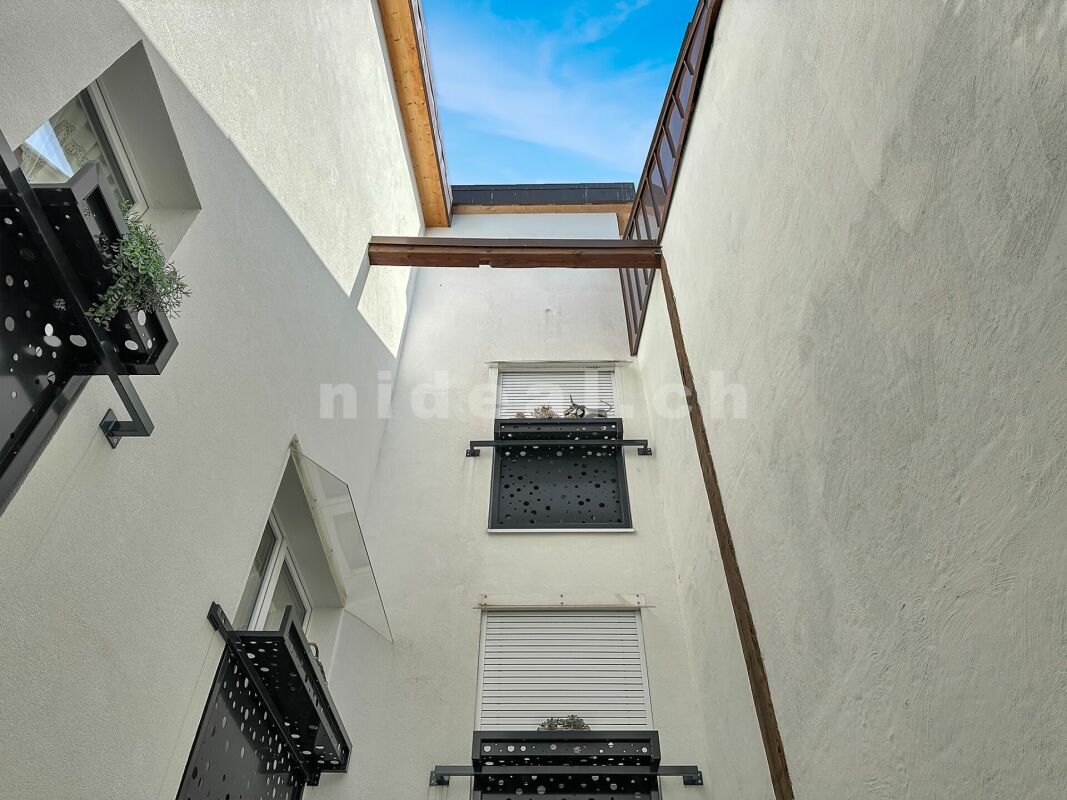 Situé en plein centre du village, cet appartement de 4.5 pièces se niche au 2ème étage d'un immeuble au caractère unique, entièrement transformé et rénové en 2019-20. Le projet a su préserver l'authenticité et l'âme de la bâtisse tout en intégrant des matériaux de qualité et des aménagements contemporains.