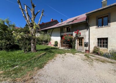 Découvrez cette charmante ferme partiellement rénovée, offrant un beau potentiel de développement. Ce bien dispose d’un appartement indépendant de 2,5 pièces avec entrée privée, idéal pour une location ou un usage familial.