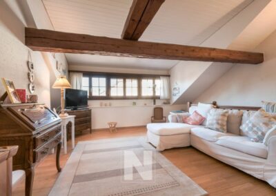 Des travaux de rénovation de l'enveloppe sont à prévoir, mais le bien offre un beau potentiel d'agrandissement avec la possibilité de créer deux appartements indépendants. Les charges sont faibles et l'environnement est particulièrement attractif : commerces et services à proximité immédiate, arrêt de bus à env. 300 m et écoles à env. 350 m.