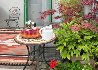 Une terrasse privative, équipée d'une toile de tente, de 18 m² permet de profiter d'un espace extérieur plaisant. Toutes les fenêtres disposent de moustiquaires.