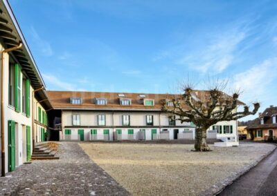 Le quartier de Penau, au Mont-sur-Lausanne, représente une parfaite harmonie entre patrimoine rural et architecture contemporaine. Construit en 2011 sur le site d’un ancien hameau, il propose un cadre résidentiel moderne, fidèle à l’esprit et aux volumes des fermes d’origine. Idéalement situé à seulement 1,5 km de l’École Internationale de Lausanne, il offre un accès rapide et pratique à cet établissement, aussi bien à pied qu’en voiture. De plus, la résidence est en bordure de champs et la forêt du bois du Jorat est à 5 mn à pied !