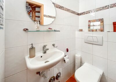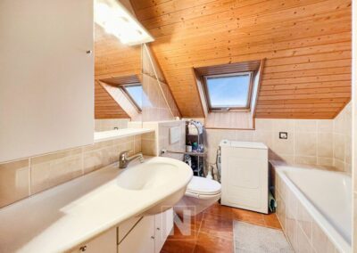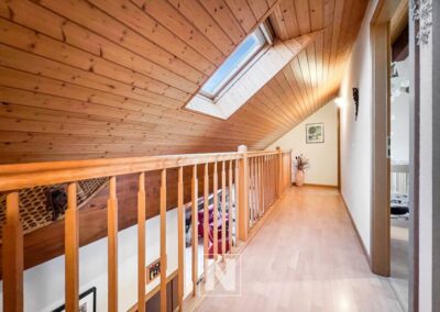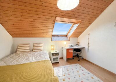 À l'étage, la partie nuit comprend deux chambres à coucher confortables et une salle de bain fonctionnelle avec baignoire et douche, assurant une belle séparation des espaces pour préserver la tranquillité de chacun.