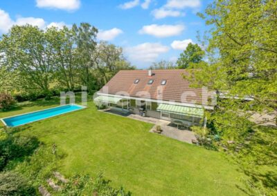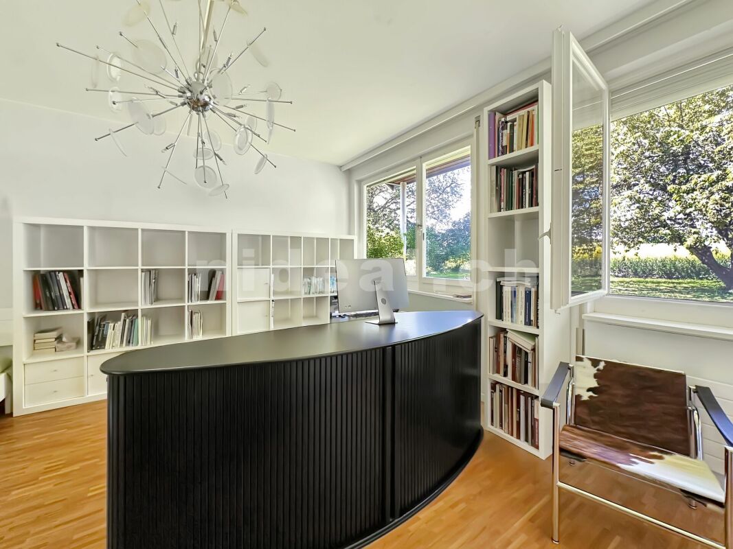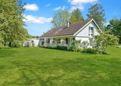 Située dans un cadre idyllique et verdoyant, cette spacieuse villa de 7.5 pièces est implantée sur une vaste parcelle de 4'498 m² en zone agricole. Offrant une surface habitable de 251 m² et une surface utile de 376 m², cette propriété se déploie sur trois niveaux et bénéficie d'un environnement calme et bucolique, à moins de 5 minutes de la sortie d'autoroute Morges Ouest.