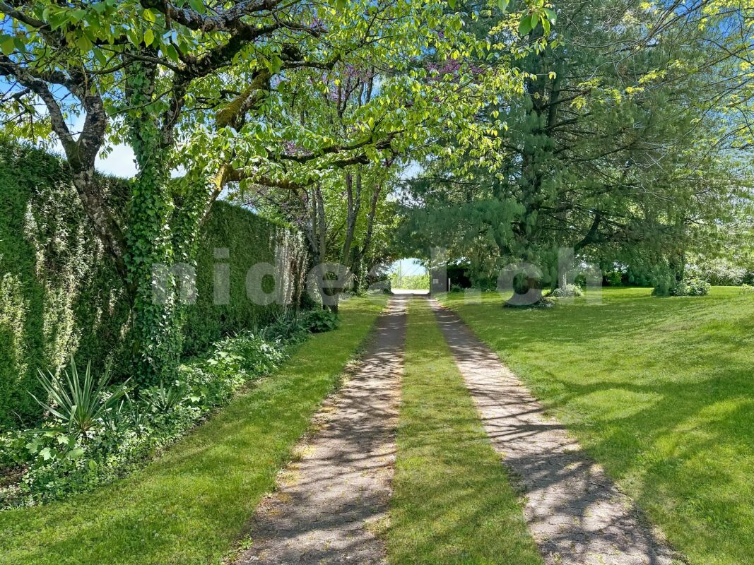 Grand jardin arboré et terrasse orientée sud