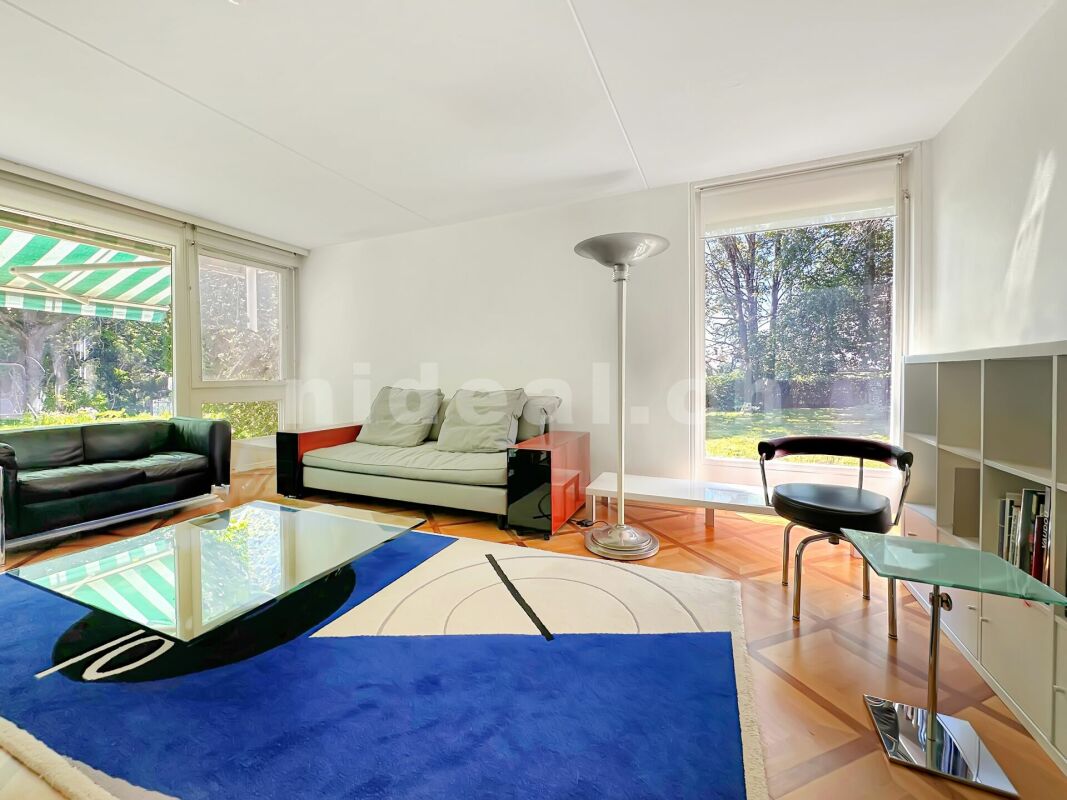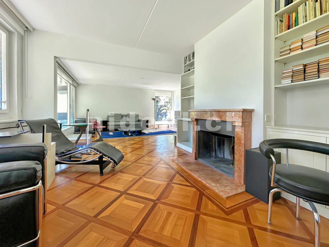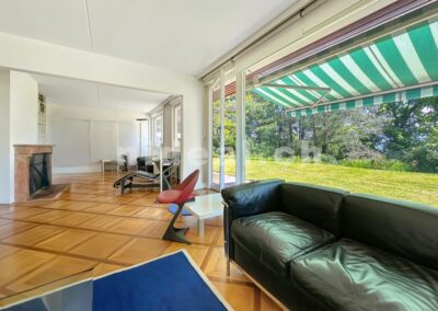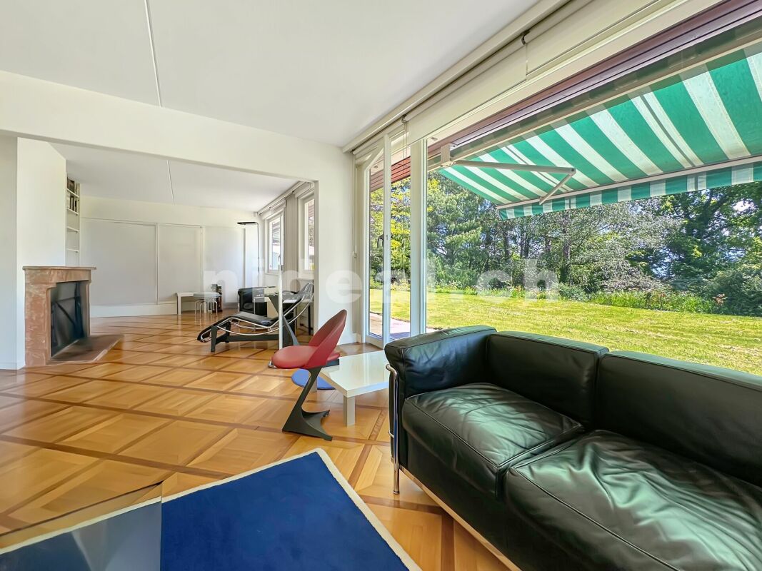 Grand séjour lumineux de 45 m² avec cheminée, ouvert sur le jardin et une large terrasse orientée sud